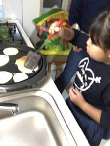 学童のお友達とオヤツにホットケーキ