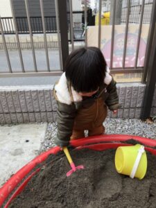 子どもは風の子、元気に砂遊び