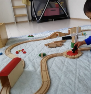 木製のプラレールで電車遊び🚃 楽しいね🥰