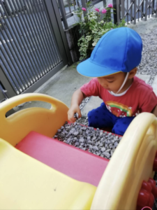 滑り台の階段にジャリを敷き詰めて、ニンマリ😁です