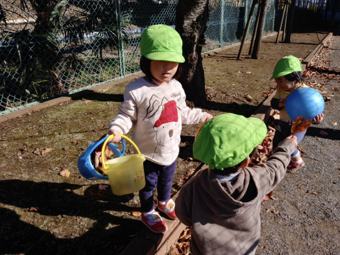 日向で葉っぱ拾い😊