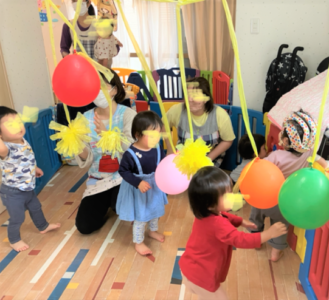室内で風船🎈のれんで遊びました。