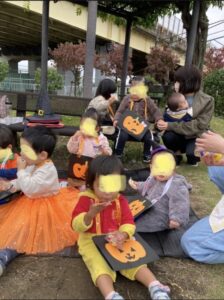 公園で『トリックorトリート』👻 でオヤツをもらい、パーティです🎃