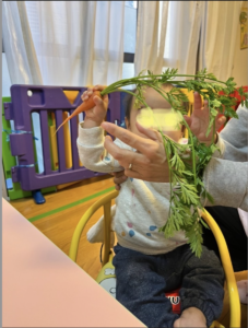 食育で葉付人参🥕を触れました。
