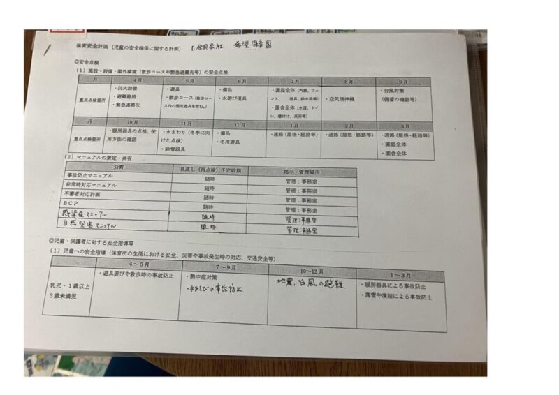 保育安全計画に関する計画